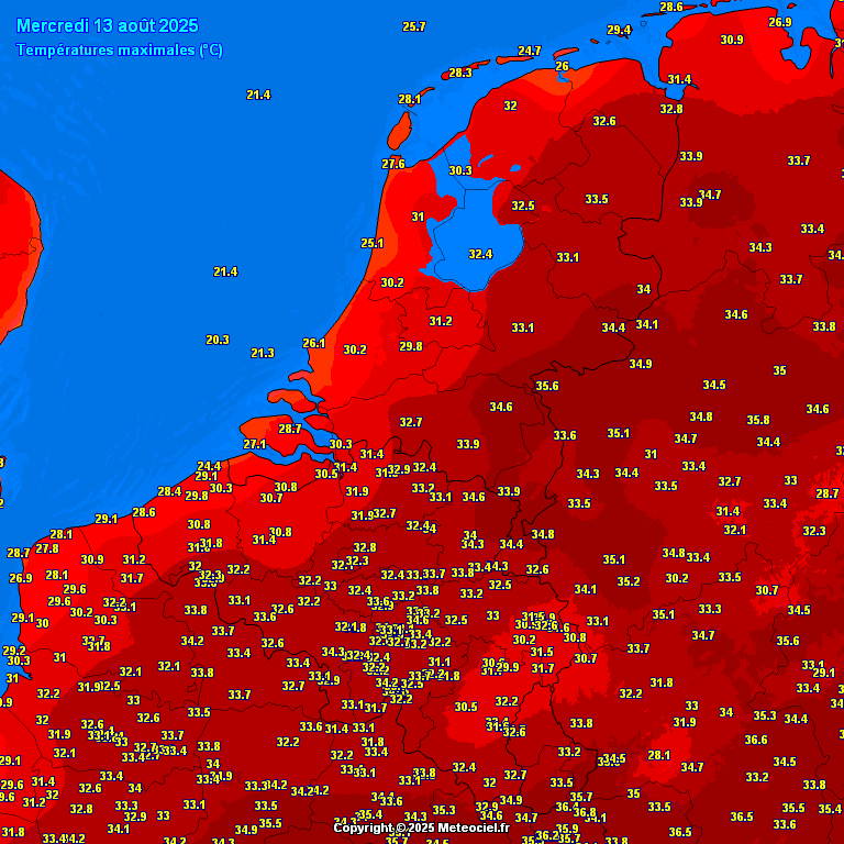 Donderdag 14/8: 34,9°C – 33.3°C