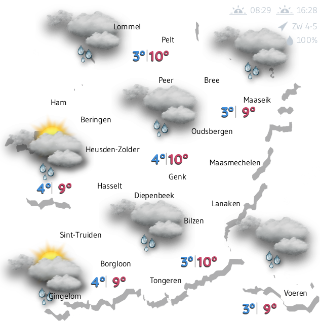 Op de meeste plaatsen in Limburg gaat het 's avonds dan wel urenlang regenen.