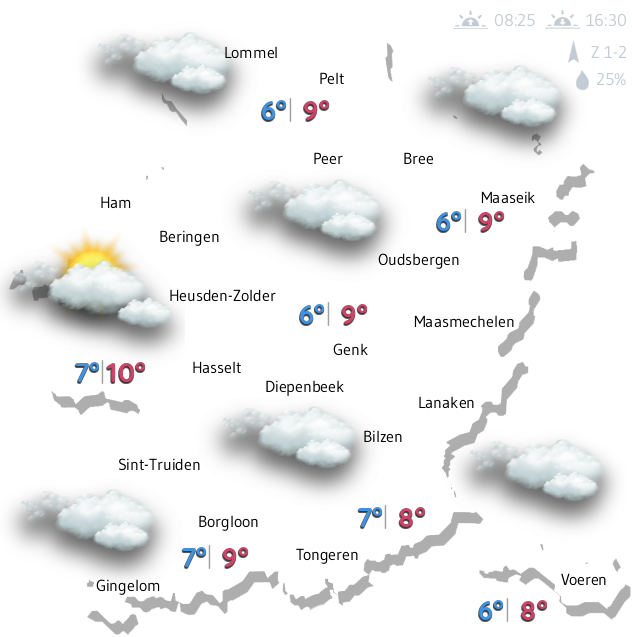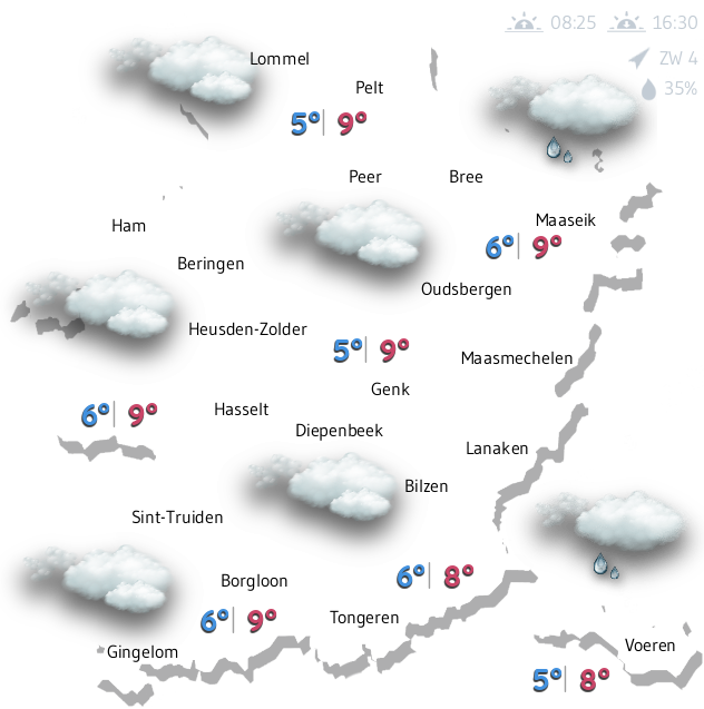 Op deze pagina vindt u een overzicht van vele meetgegevens uit Limburg en ruime omstreken. Niet alleen van temperaturen, maar ook van andere parameters zoals neerslag, luchtdruk en wind. Deze gegevens kunnen eventueel gebruikt worden om een weersverwachting last minute te kunnen bijsturen.