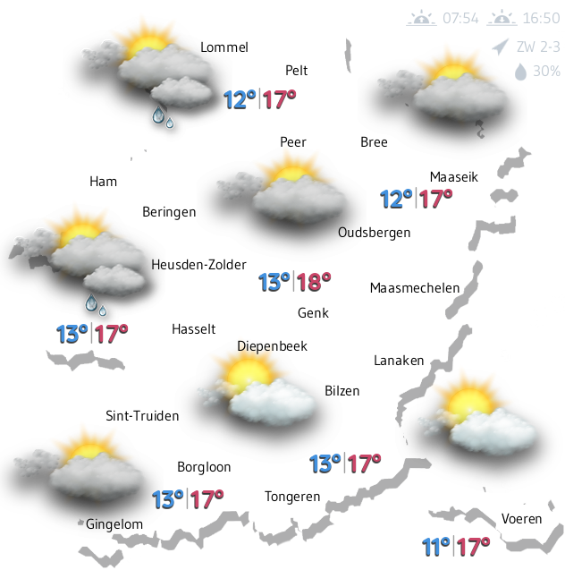 Voor de zeer korte termijn zijn de weerkaarten niet meer zo relevant, en kunnen we veel beter afgaan op wat de satellietbeelden (wolken) en radarbeelden (regen) ons tonen. Op deze pagina vindt u een overzicht van de voornaamste wolkenfoto's en neerslagmetingen, niet alleen boven Limburg maar ook om ons heen.