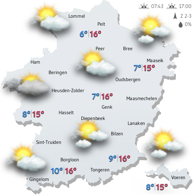 Vandaag blijft het in Limburg heel de dag droog. Hoe meer naar het oosten, hoe minder vaak er middelbare wolken voor de zon zullen schuiven.