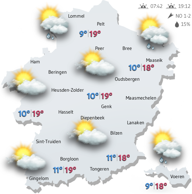 Voor de zeer korte termijn zijn de weerkaarten niet meer zo relevant, en kunnen we veel beter afgaan op wat de satellietbeelden (wolken) en radarbeelden (regen) ons tonen. Op deze pagina vindt u een overzicht van de voornaamste wolkenfoto's en neerslagmetingen, niet alleen boven Limburg maar ook om ons heen.