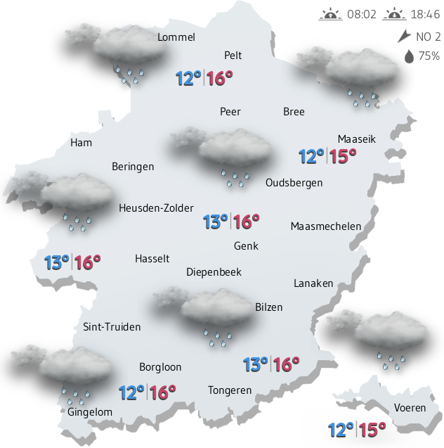 Voor vandaag staat er voor Limburg en omstreken een overwegend bewolkte dag op de weerkaarten.