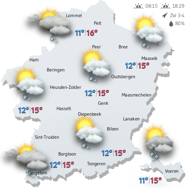 Voor de zeer korte termijn zijn de weerkaarten niet meer zo relevant, en kunnen we veel beter afgaan op wat de satellietbeelden (wolken) en radarbeelden (regen) ons tonen. Op deze pagina vindt u een overzicht van de voornaamste wolkenfoto's en neerslagmetingen, niet alleen boven Limburg maar ook om ons heen.