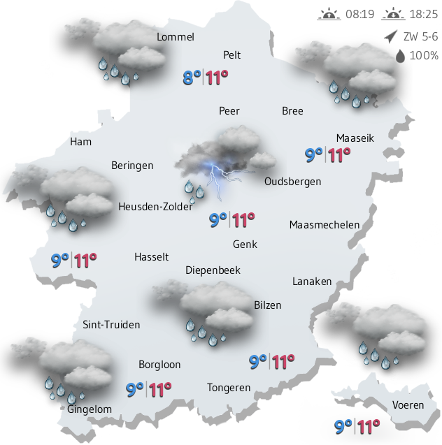 In de nacht naar zaterdag passeert er een volgende buienzone van noordwest naar zuidoost over Limburg.