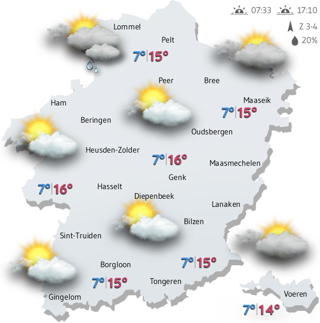 Het blijft in Limburg veruit overwegend droog. Op heel wat plaatsen zelfs helemaal, maar in de vooravond zou er op sommige plaatsen tijdelijk eens een beetje regen kunnen vallen.