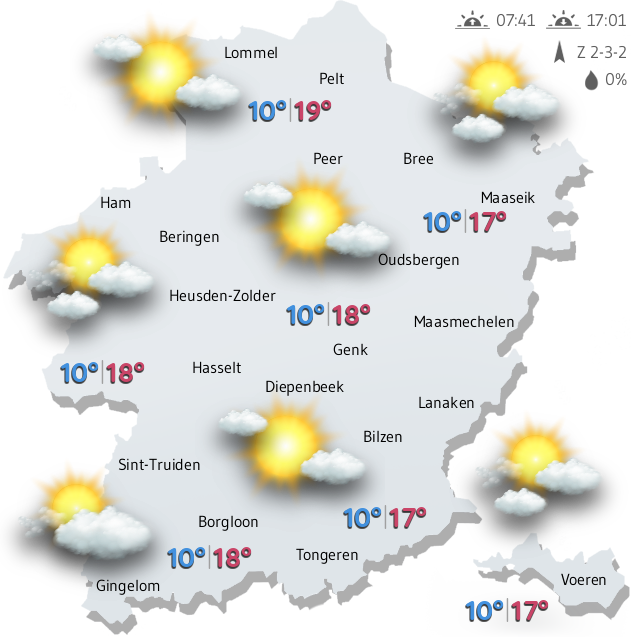 Woensdag loopt de temperatuur in Limburg op naar gemiddeld 17 a 18°C. Lokaal kan het zelfs 19°C worden. Op terrassen en in tuintjes met zicht op het zuiden zal de thermometer zelfs meer dan 20°C kunnen aanwijzen. Dit zijn dus zeer hoge waardes voor november.