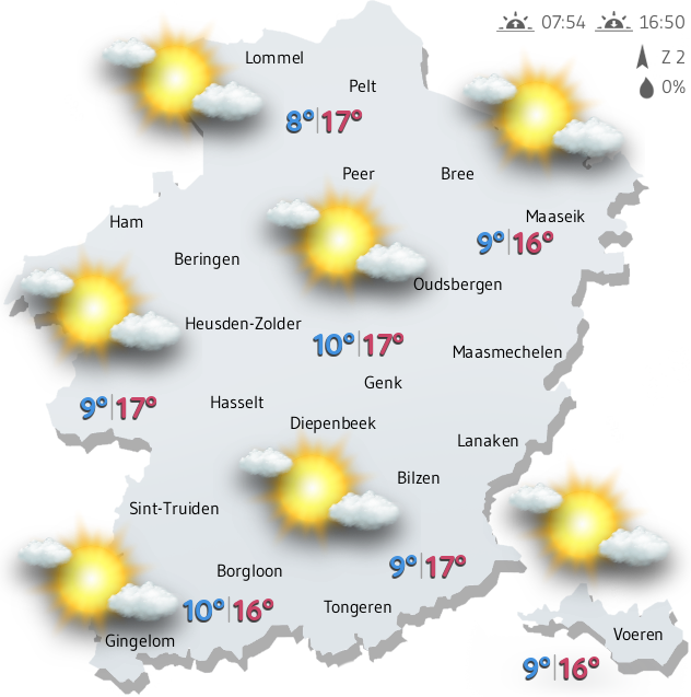 Voor de zeer korte termijn zijn de weerkaarten niet meer zo relevant, en kunnen we veel beter afgaan op wat de satellietbeelden (wolken) en radarbeelden (regen) ons tonen. Op deze pagina vindt u een overzicht van de voornaamste wolkenfoto's en neerslagmetingen, niet alleen boven Limburg maar ook om ons heen.