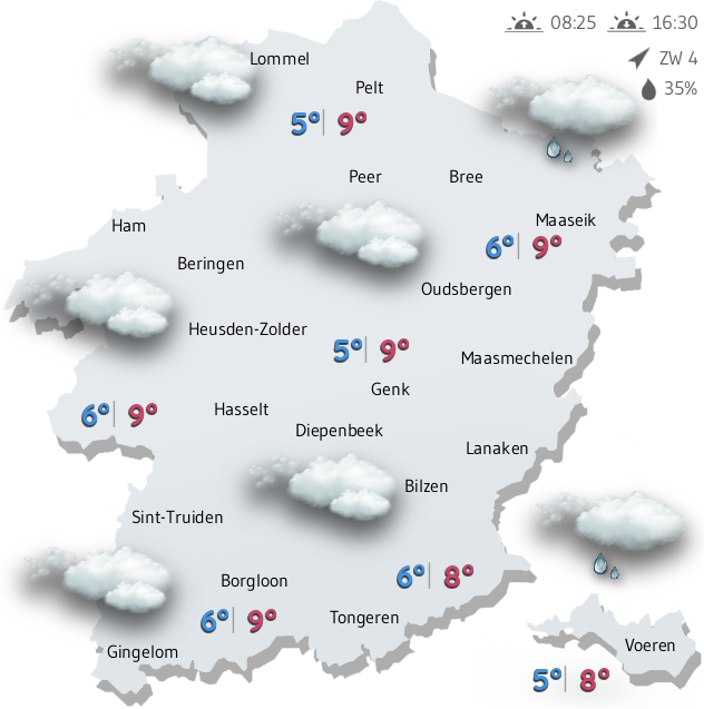 Vandaag blijft het in Limburg grotendeels droog. Vroeg op de dag zouden er nog wat spatjes regen kunnen vallen, maar in de loop van de ochtend schuiven de dikste wolken door naar Duitsland. Het blijft vervolgens echter toch nog heel de dag overwegend bewolkt.